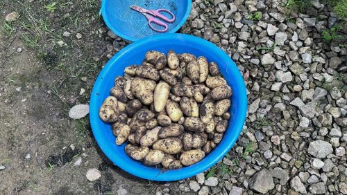ジャガイモの葉が黄色くなり倒れだしたので、三分の一ほど掘ったら