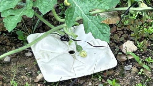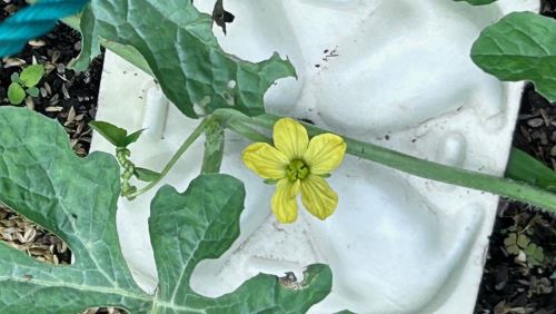 スイカの玉が2個見つかったが毎度のことでどこまで育つか。