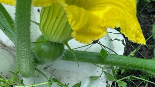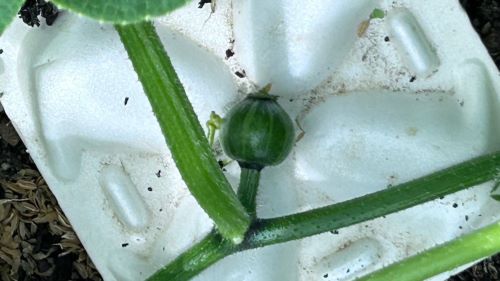 坊ちゃんカボチャの花の下に丸い玉がついてきた。