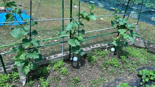 骨を取り替えた後にキュウリ用の骨組みをもとに戻した。