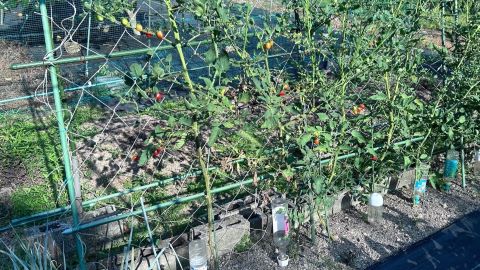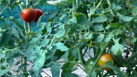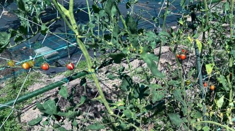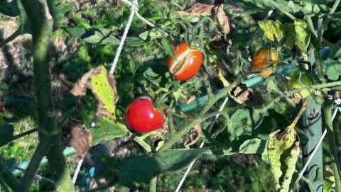 挿し木のミニトマトは色づいてもほとんどが割れている。
