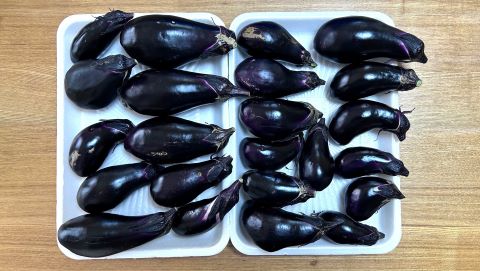 ナスビと水ナスは一週間Iだが空いたら巨大な秋ナスになっているのがあった。