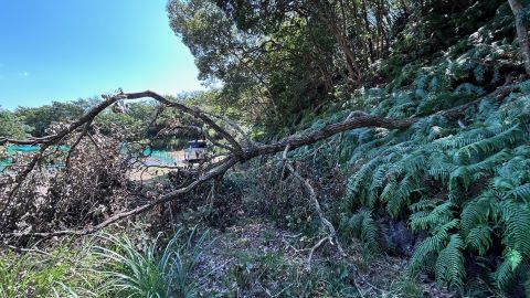 倒れていた。涼しくなったら処分し薪ににする予定。柿は落ちて