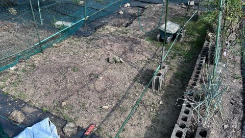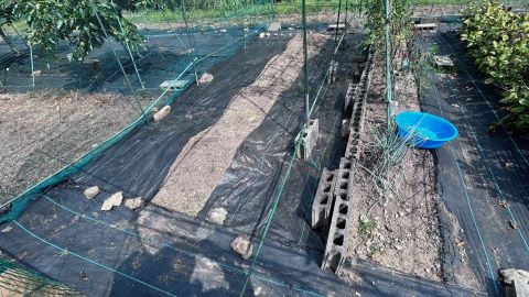 酷暑のため先延ばししていたスイカとカボチャ跡の防草シート掛けを、