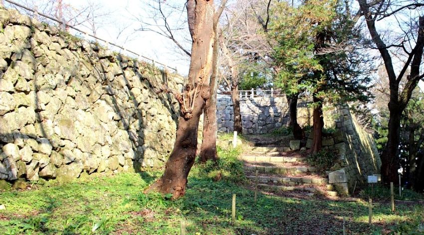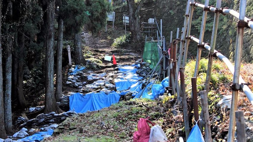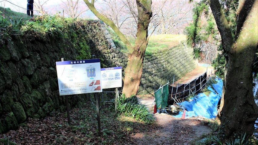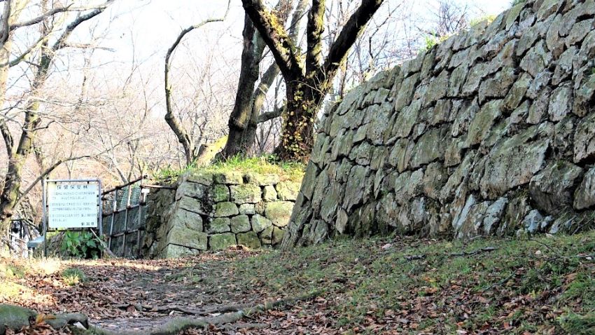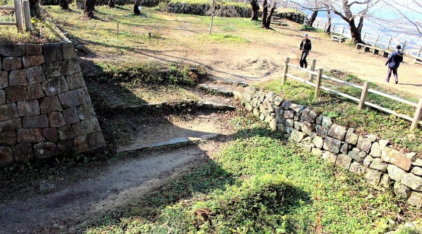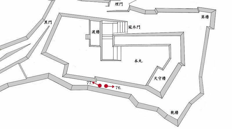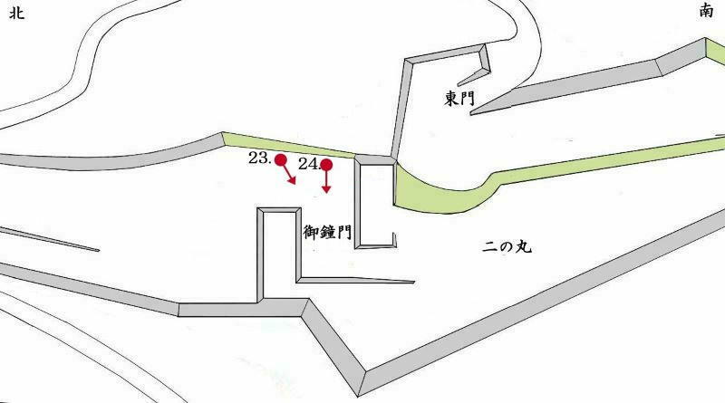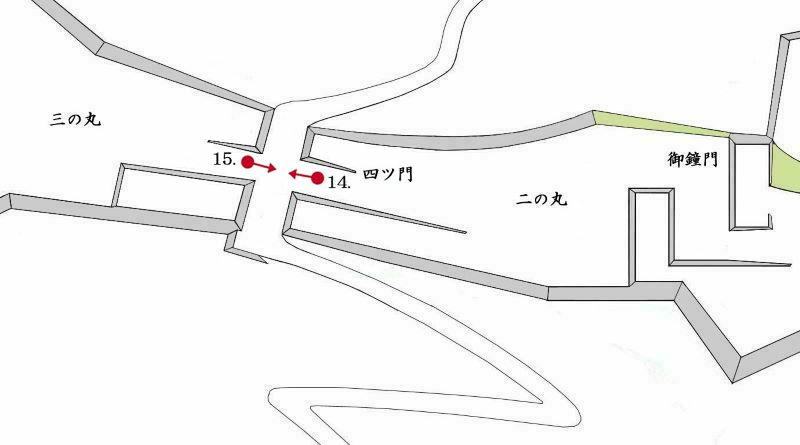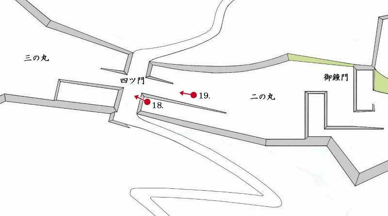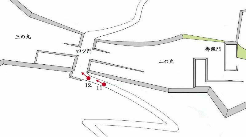 11. 七曲道からの二の丸西面石垣と四ツ門跡。
