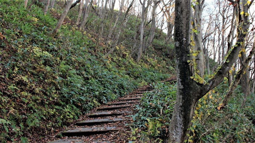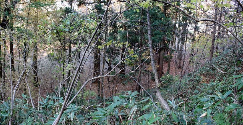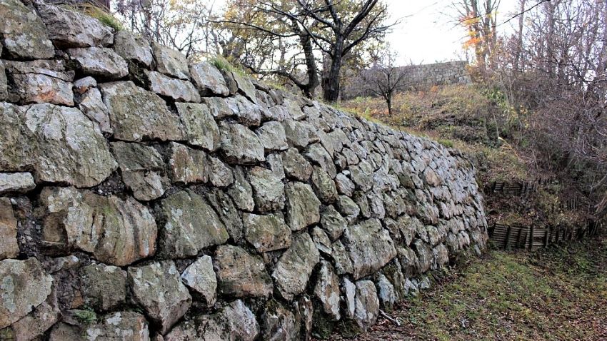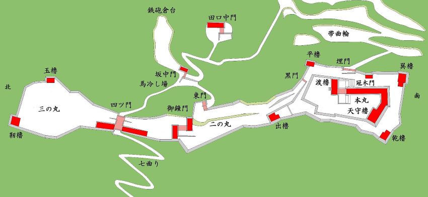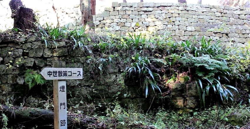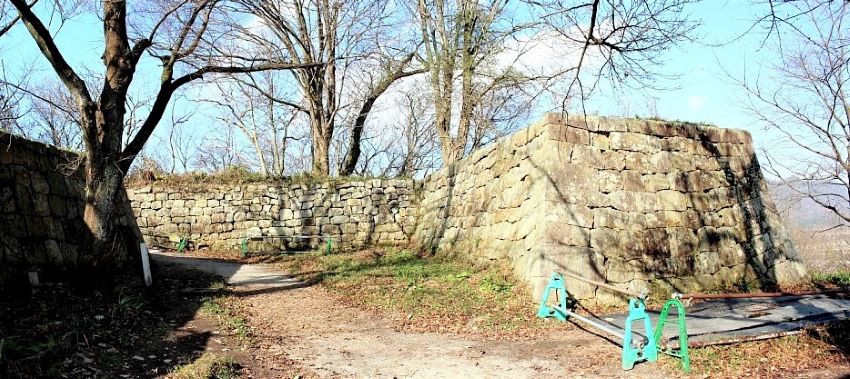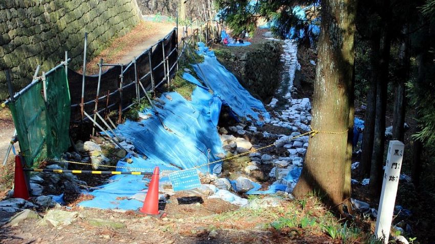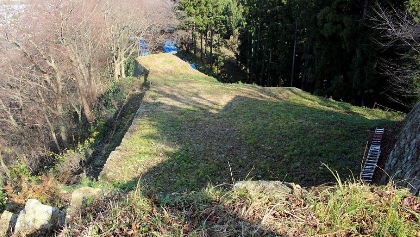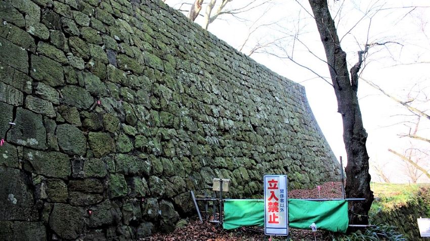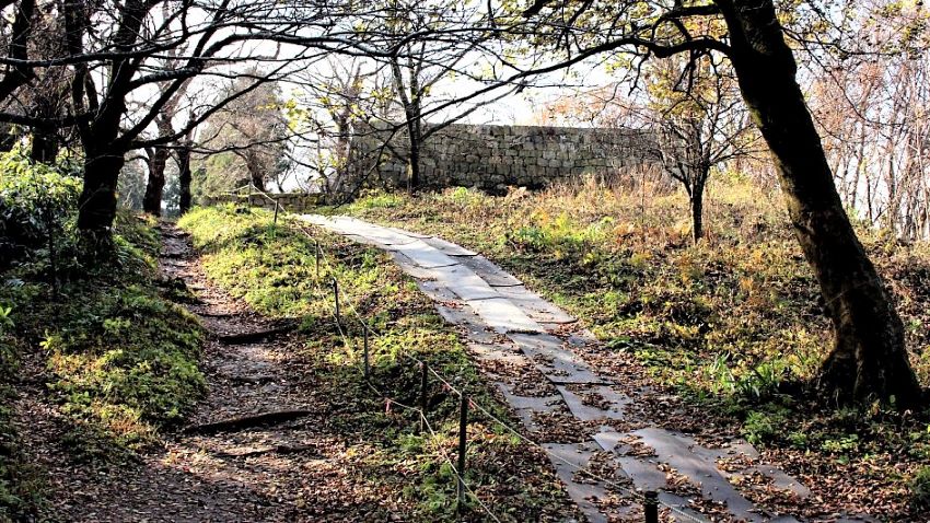 11. 七曲道からの二の丸西面石垣と四ツ門跡。