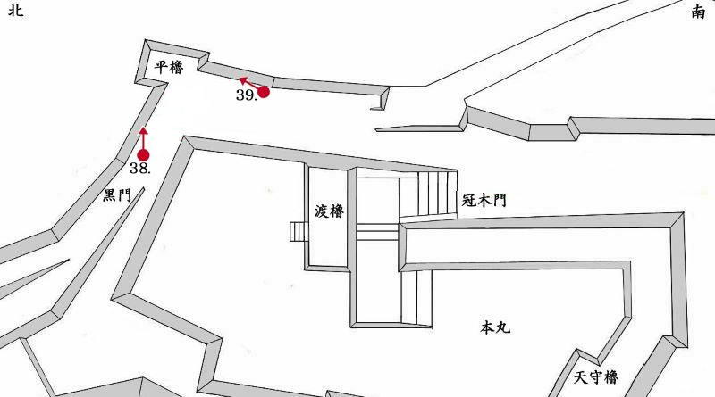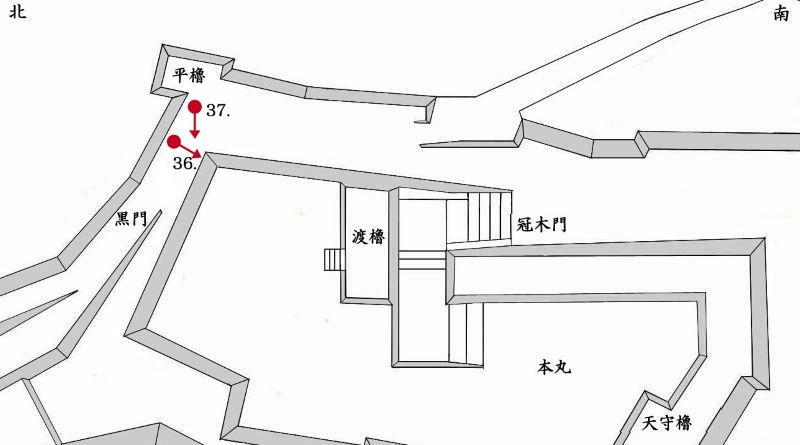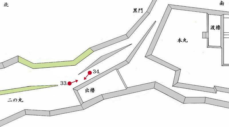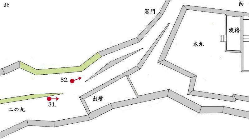 35-2. 二の丸出櫓台東面石垣と黒門跡。