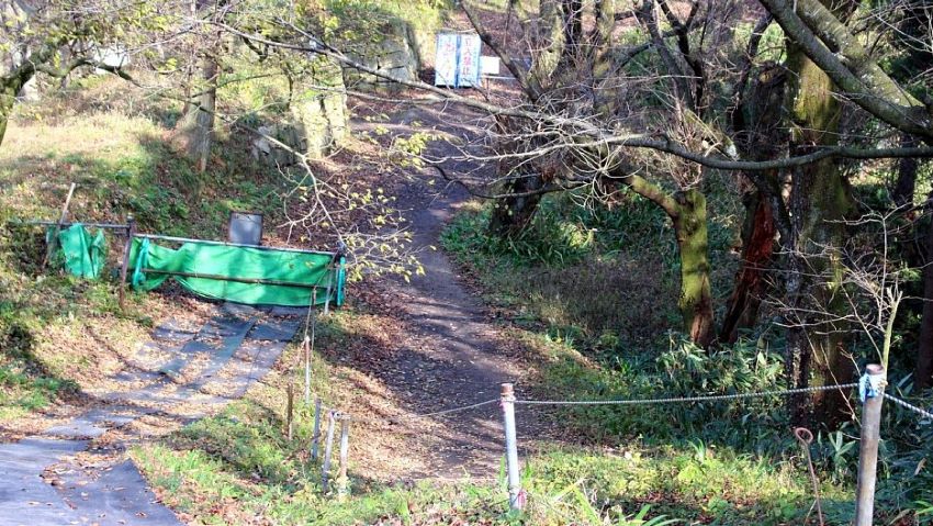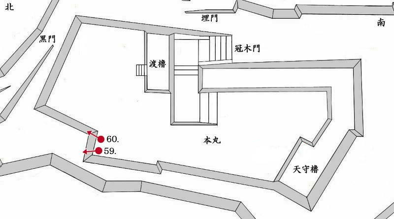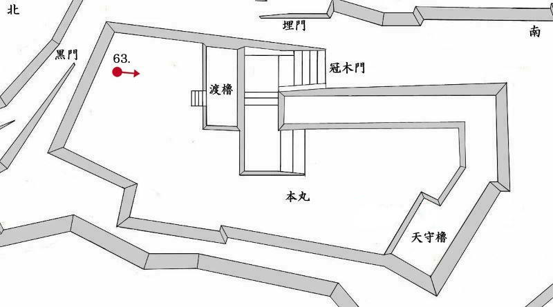 64-1. 本丸渡櫓台からの冠木門跡枡形。