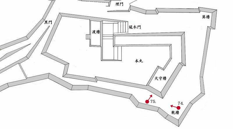 74-2. 本丸西面石垣と天守櫓台西南角。