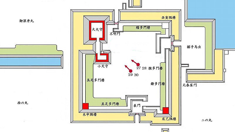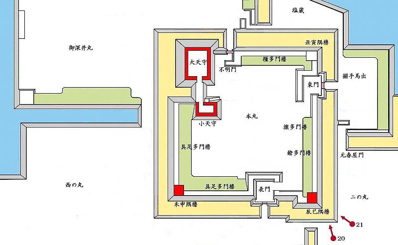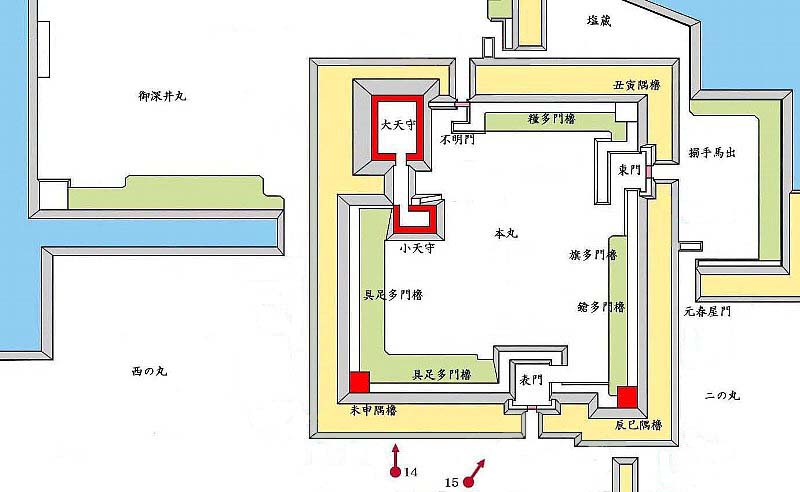 15. 本丸 正門ニの門枡形・辰巳隅櫓 1980年代