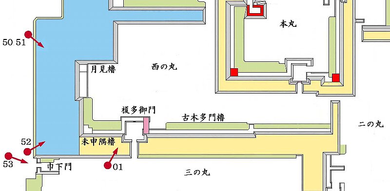 50. 西の丸 月見櫓台・西面石垣・未申隅櫓台 1960年代