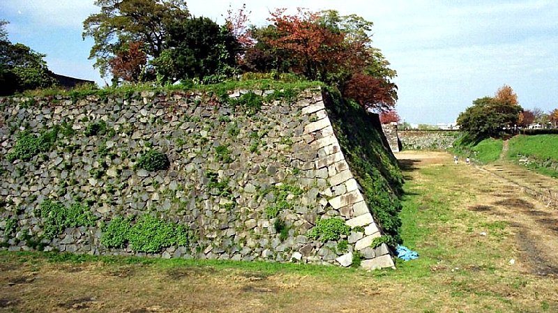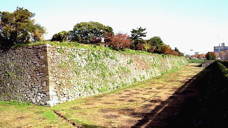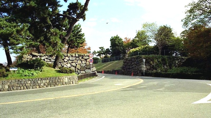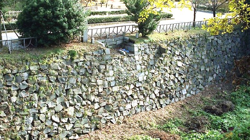 43. 二の丸南蛮たたき土塀跡からの搦め手馬出東面石垣・塩蔵東面石垣 2005年5月18日新世紀名古屋城博