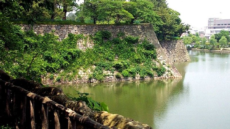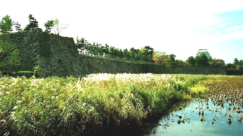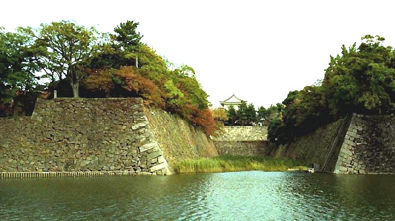 44. 二の丸 丑寅隅櫓台・北面石垣と水堀 1980年代