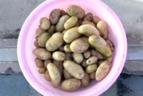 新年初めての収穫はジャガイモ大小合わせて約60個。