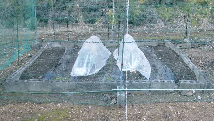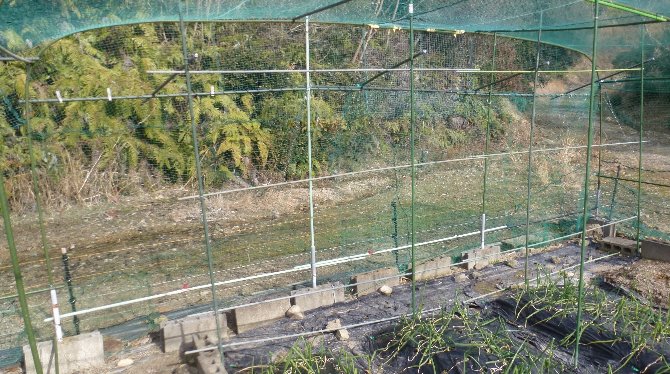 2022年末に引き続き夏野菜用の網掛けのための骨組みを、