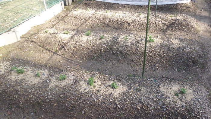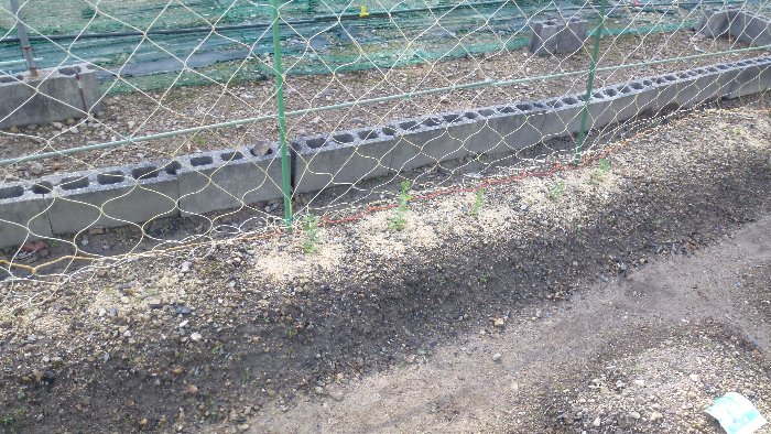 タマネギが植えてある 畑の北側に設置しこのあと網掛けを