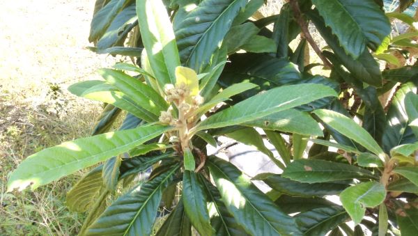 ビワの木に花が咲きだした。