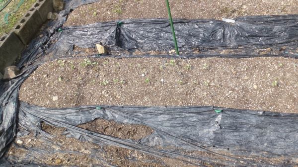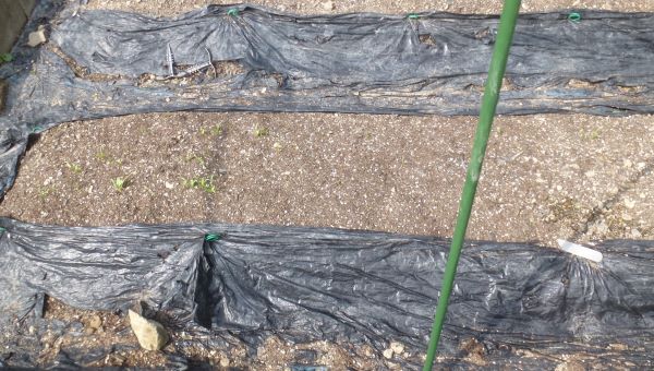 同じく再度種蒔きをしたホウレンソウは芽の出が悪い。