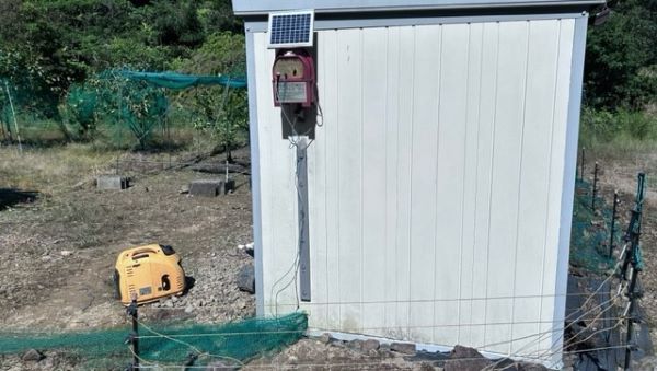 東側の網掛け倒壊除けのため、こちらも物置に穴をあけ引っかけ