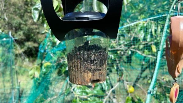 スズメバチ退治のために仕掛けたワナのなかに、蜂だけでなく、
