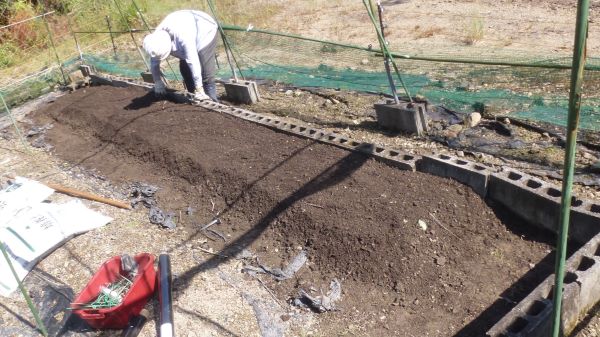 入れ同じ方法で畝を造り、今年は培養土を入れた分高さが増加し