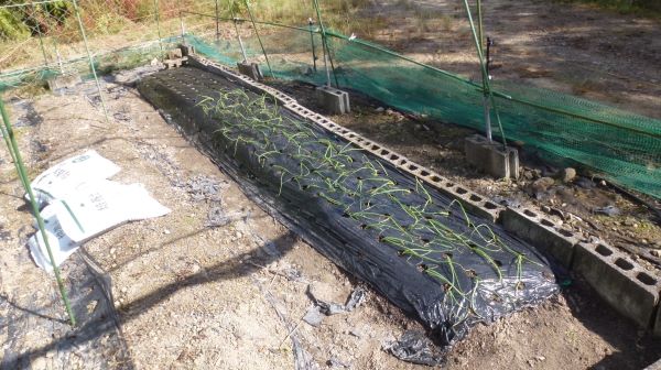 害虫除けのために種蒔きしたネギの芽が出てきた。