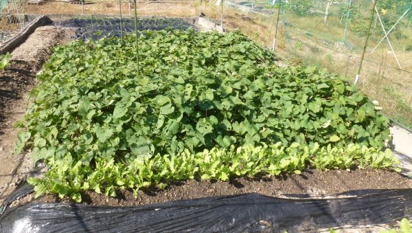 さきに種蒔きしたシュンギクとホウレンソウの生育があまり
