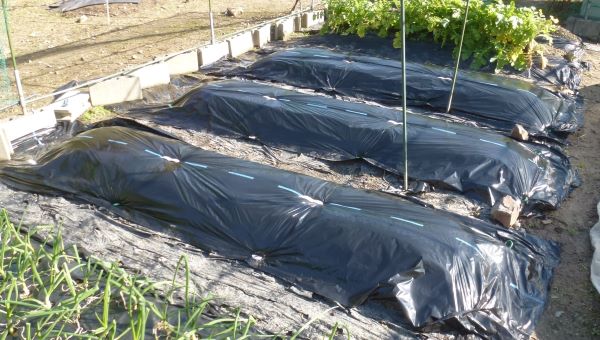 穴無しマルチをかけて完成。