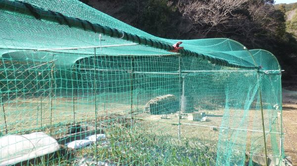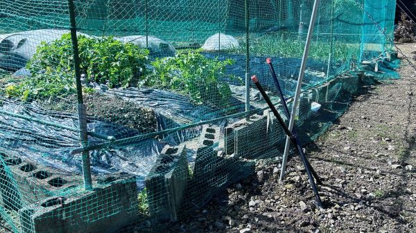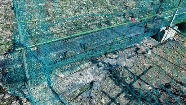 除草のために灯油バーナーを使ったとき、網の所々に穴をあけてしまった
