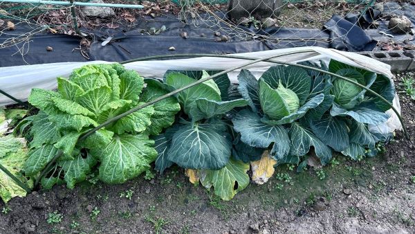 最後に残ったハクサイとキャベツ一個ずつを収穫した。