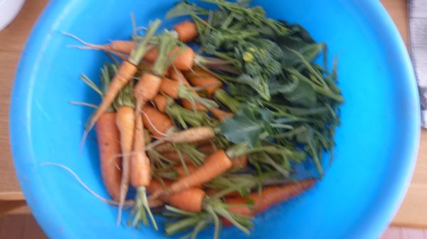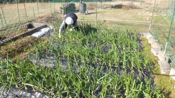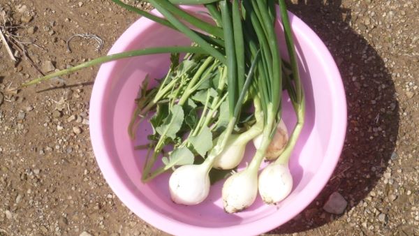 タマネギの成長具合を見るために数個収穫し、残っていたブロッコリーも10本