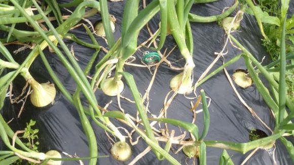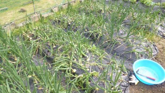 タマネギが部分的に倒れだし玉も大きいのが目立ってきたので、