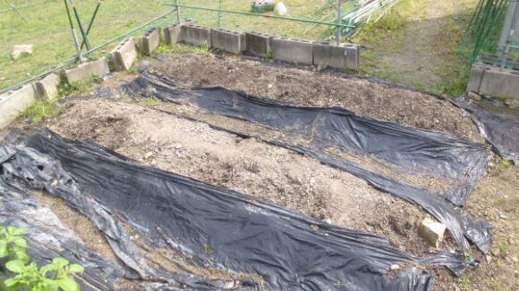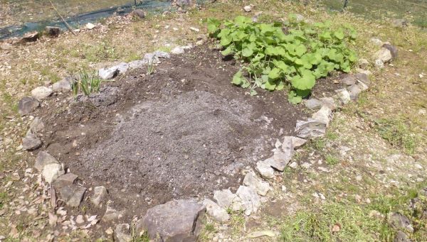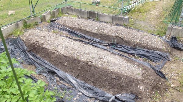 フキの横の土を高くしてこちらも夏野菜用にする。