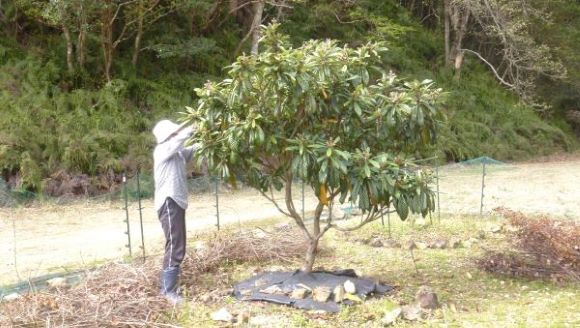 ビワの実も成長しているので今年は虫よけの袋を被せる予定。