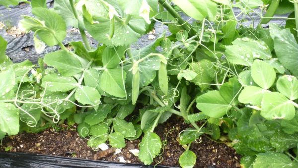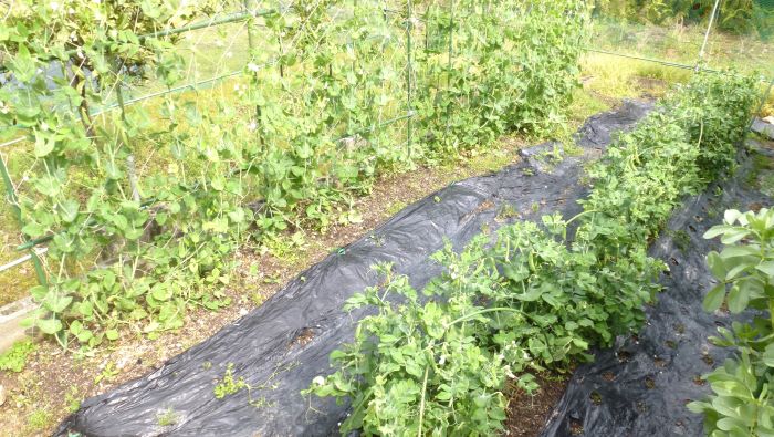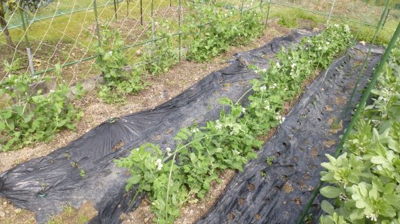 今シーズンの豆類はよく育っていて、ツルなしエンドウには早くも