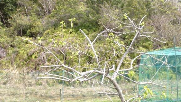 冬野菜が植えてあった畝をくずし、イチジク3本用に変更した。