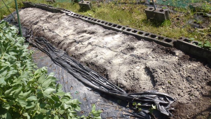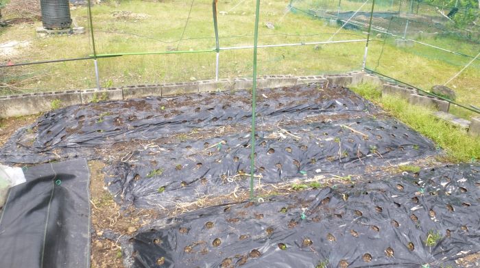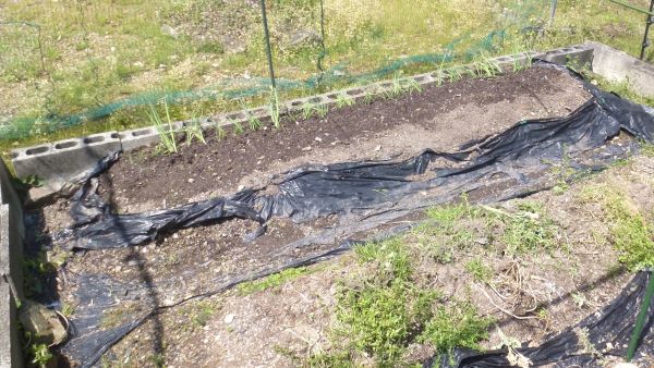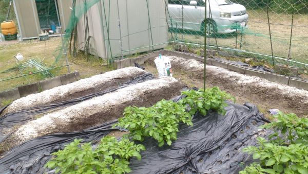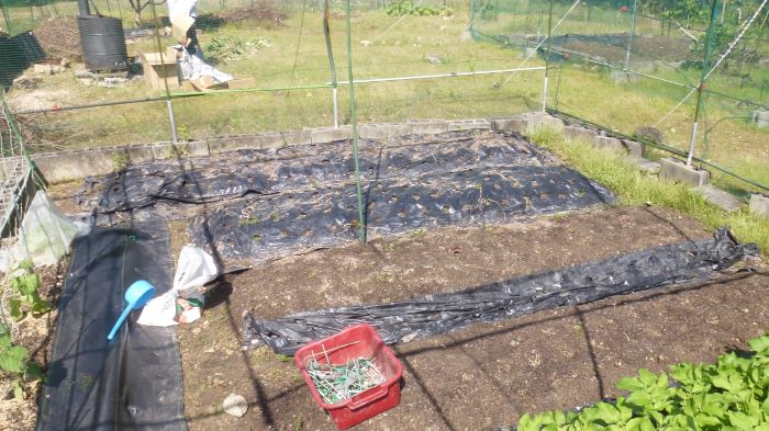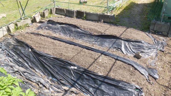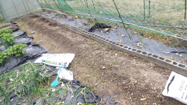 タマネギの後にサツマイモとエダマメを植えるため準備で、