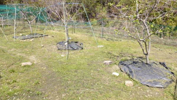 柿やイチジクの周辺の雑草が増えだしたので、取り合えず幹に