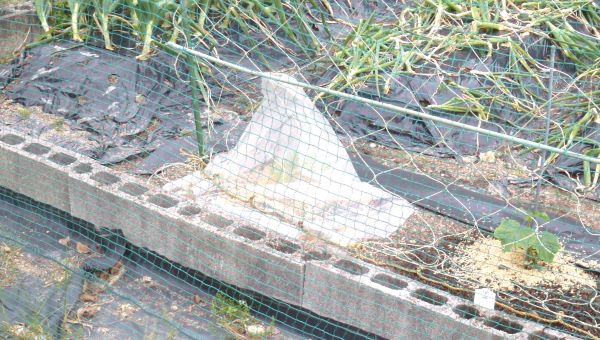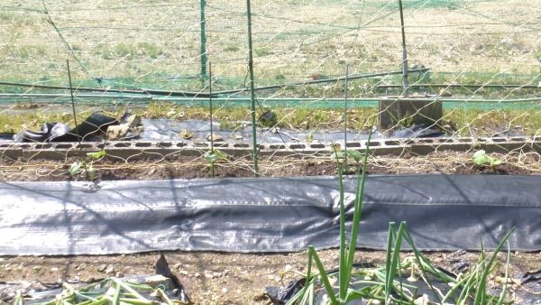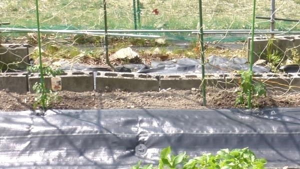ミニトマトやキュウリ用網の骨組みに折れているのか散見されたので、
