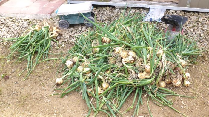 植え付けたタマネギ400本のうち超極早生200本分を収穫。