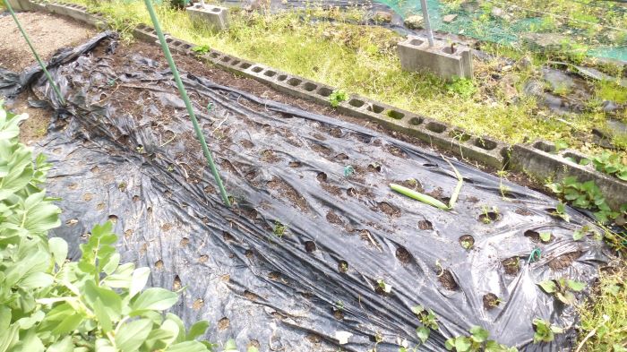 夏野菜の準備で収穫後空いた畝の除草を行い、次回に苦土石灰、