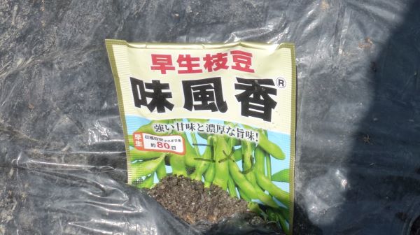 コメリで早生枝豆味風香(72粒)の三種類を植え付けた。