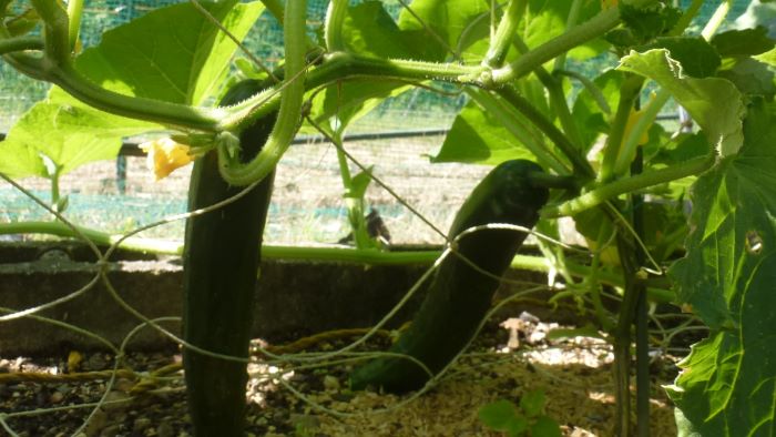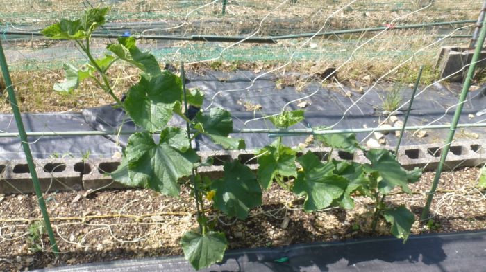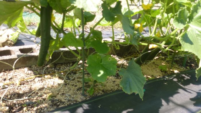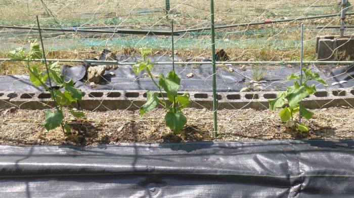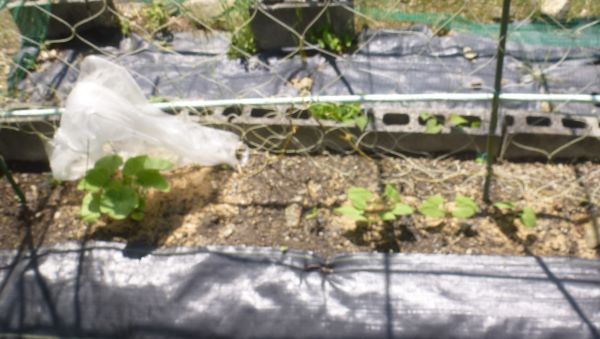 キュウリは数本もうすぐ収穫できそうで10㎝ほどになっている。
