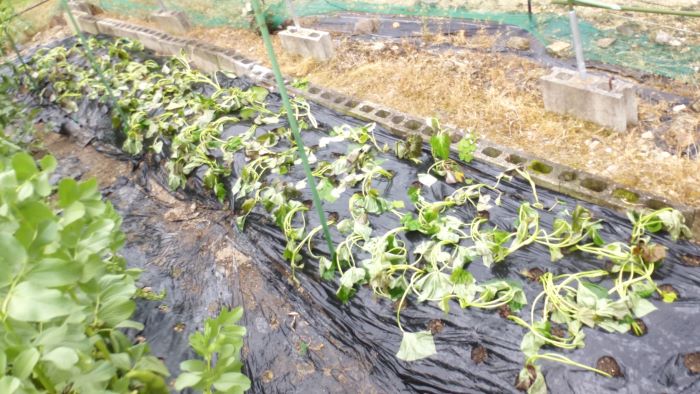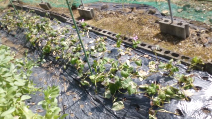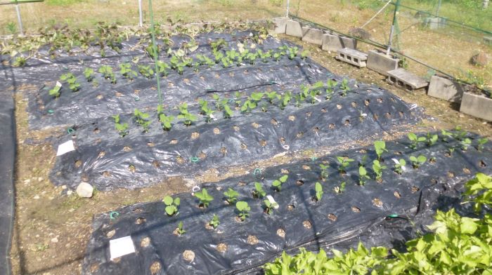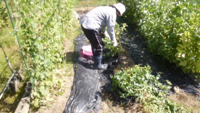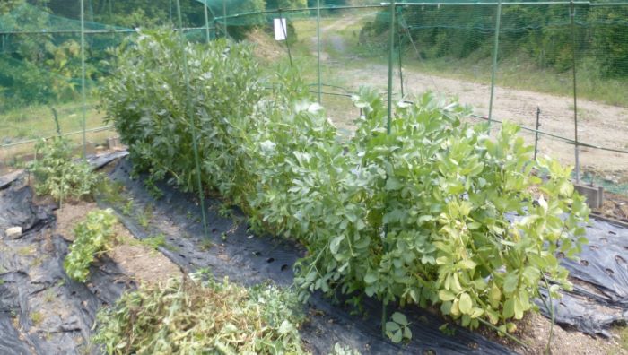 ソラマメも終わりが近づき順次撤去にかかり、残菜は枯れるまで雑草除けに