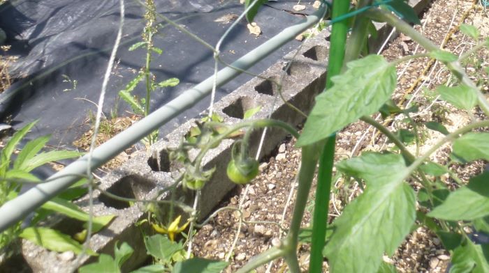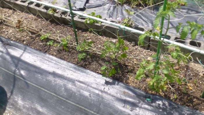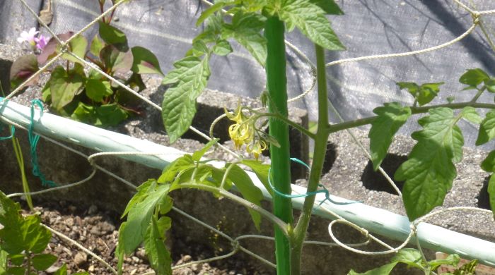 ミニトマトが成長して花が咲き脇芽も出だしたので、