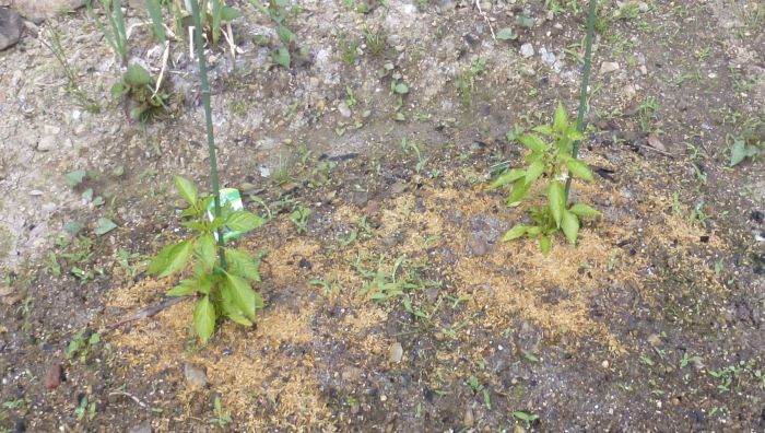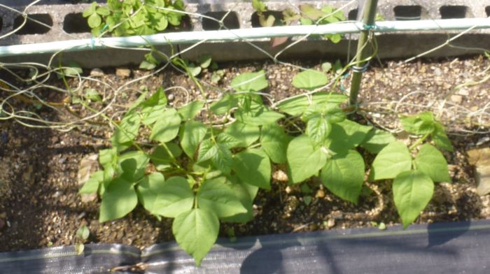 インゲンは12粒植えたが芽は6個ほど出ている。