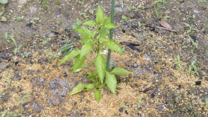 1本ずつ植えたシシトウとピーマンはピーマンの方が先に花が咲いた。