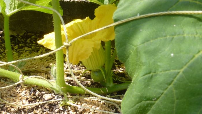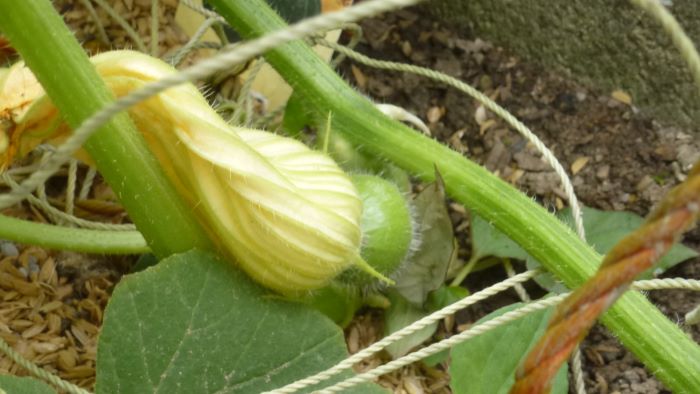 坊ちゃんカボチャの花に玉ができているが、雄花が見られないので育つか。