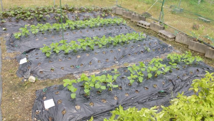 農業屋でサツマイモ(安納芋)の苗を200本(12500円)購入し、2本の畝に