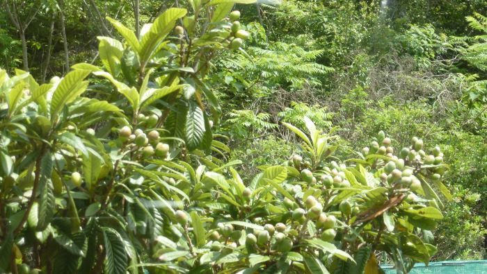 ビワの実もたくさんできているが小さいのが多いので剪定で大きな実にしたい。